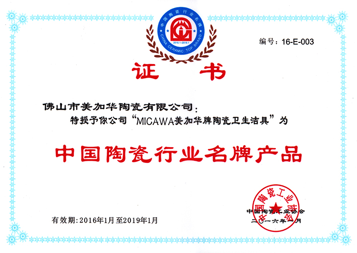 (獲獎(jiǎng)證書(shū):中國(guó)陶瓷行業(yè)名牌產(chǎn)品)