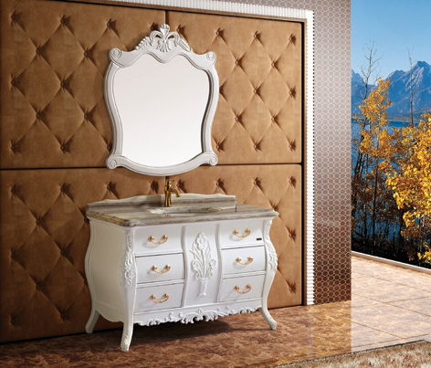 MFG-24實木仿古柜,采用泰國進(jìn)口橡木,配以水晶木紋白天然大理石臺面,以及圓弧形立體大理石臺下盆。純白色彩配以金色五金拉手,整體外觀凸現(xiàn)新一代田園風(fēng)格,產(chǎn)品游走于現(xiàn)代與復(fù)古之間,線條簡約而不簡單,品味低調(diào)而不失奢華。中間蘭花的雕刻修飾,經(jīng)由純實木手工打造,散發(fā)著強烈的鄉(xiāng)村田園風(fēng)情和野趣,讓那種輕松、不雕琢的感官占據(jù)冗繁的心靈,享受徹底的純凈的世界。